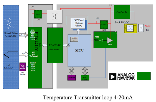 今天推薦給每個人的“智能溫度丝瓜IOS在线观看參考設計”具有高精度、信號隔離、液晶顯示、HART協議支持、環路電源、接口保護等特點。該平台主要基於ADI公司的具有自校準功能的多通道模數轉換器和愛普生公司的超低功耗16位單片機。