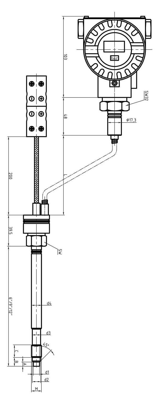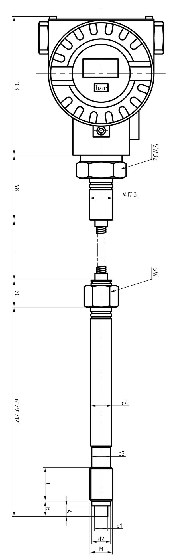工藝連接:1/2”-20 UNF,M14× 1.5,M18× 1.5,G3/4(客戶定義)